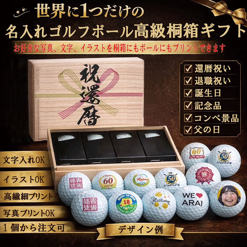 誕生日、父の日、コンペの賞品など、使いどころは無限大。オリジナルのゴルフボールで特別感の演出ができます。